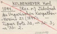 KOLBENHEYER Karl 1894 Jahrbuch des Ungarischen Karpathen-Vereins 21 (1894).