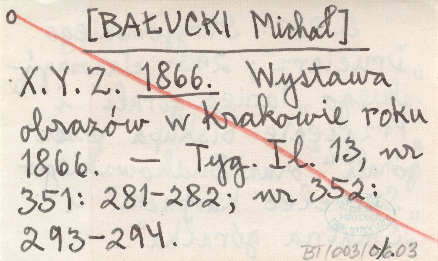 X. Y. Z. [BAŁUCKI Michał] 1866 Wystawa obrazów w Krakowie roku 1866.