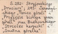Tygodnik Ilustrowany, 13, nr 351: 281-282 ; nr 352: 293-294. S. 282: Stryjowskiego "Druciarz" ; s. 293: Jaroszyńskiego "Taniec górali" i "Przyjęcie biskupa przez górali" oraz Budkowskiego "Strzelec karpacki" i "Smutna góralka".