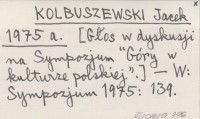 KOLBUSZEWSKI Jacek 1975 a [Głos w dyskusji na Sympozjum "Góry w kulturze polskiej".].