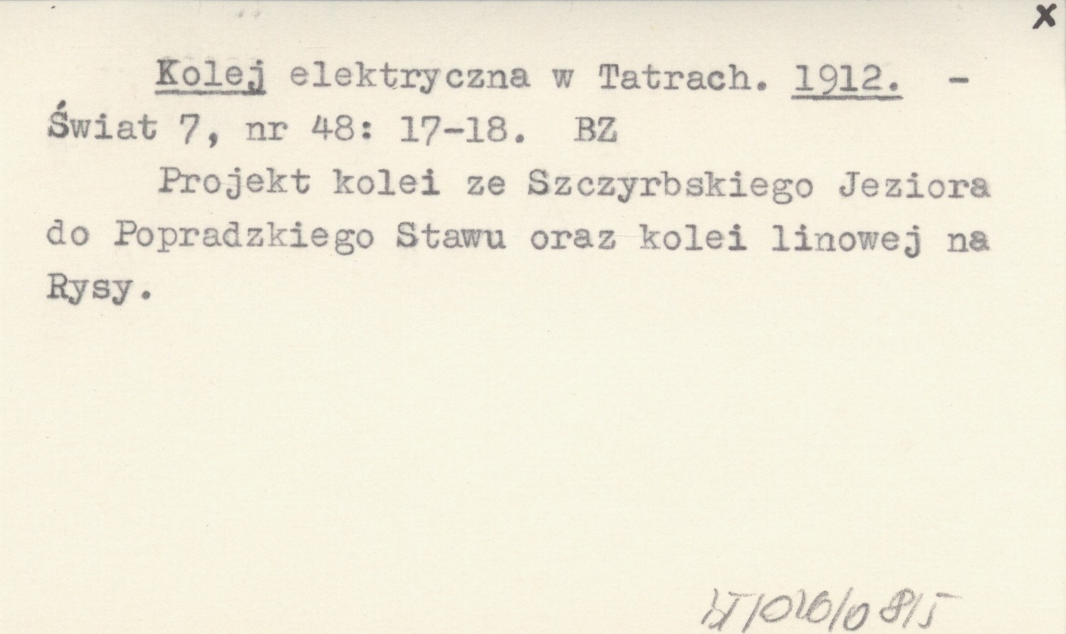 Świat, 7, nr 48: 17-18. Projekt kolei ze Szczyrbskiego Jeziora do Popradzkiego Stawu oraz kolei linowej na Rysy.