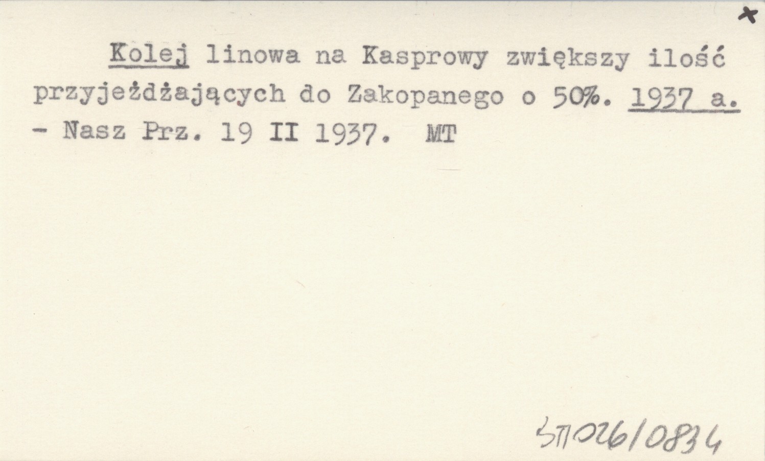 Kolej linowa na Kasprowy zwiększy ilość przyjeżdżających do Zakopanego o 50%. 1937 a