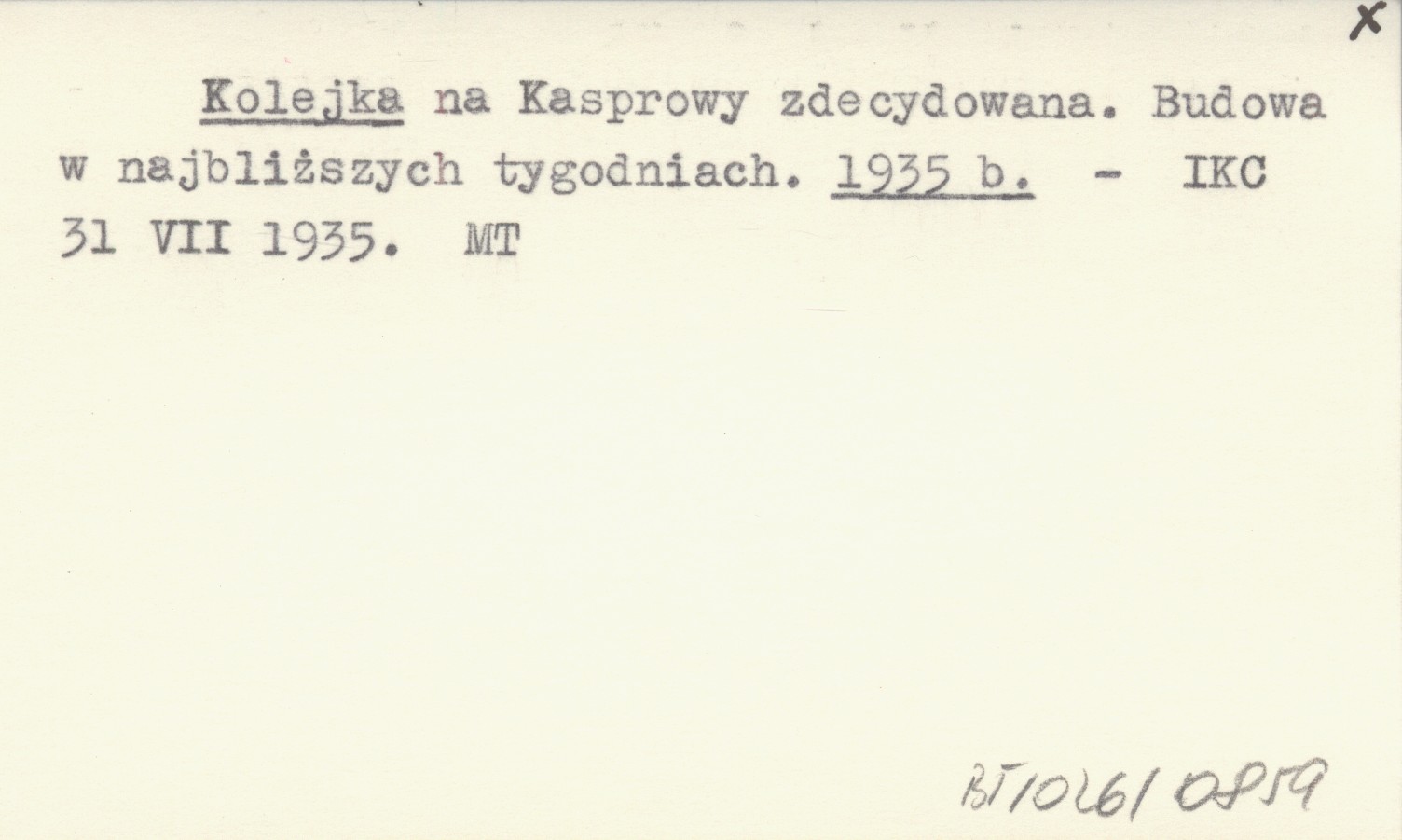 Kolejka na Kasprowy zdecydowana. Budowa w najbliższych tygodniach. 1935 b