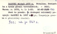 BAŁUCKI Michał 1870 a Fatalizm. Powiastka z życia górali tatrzańskich.