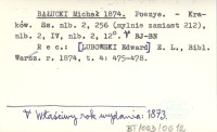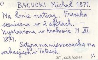 BAŁUCKI Michał 1871 Na łonie natury. Fraszka sceniczna w 2 aktach. Wystawiona w Krakowie 11 XI 1871.