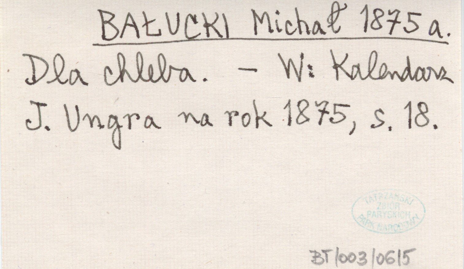 Kalendarz J. Ungra na rok 1875.