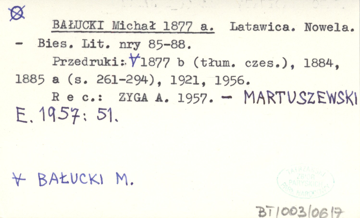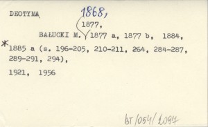 Biesiada Literacka, Nr 85-88. Przedruki: BAŁUCKI M. 1877 b (tłum. czes.), 1884, 1885 a (s. 261-294), 1921, 1956. REC: ZYGA A. 1957 ; MARTUSZEWSKI E. 1957: 51 ;