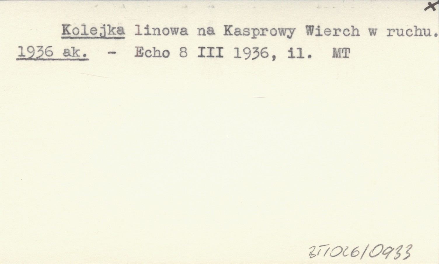 Kolejka linowa na Kasprowy Wierch w ruchu. 1936 ak