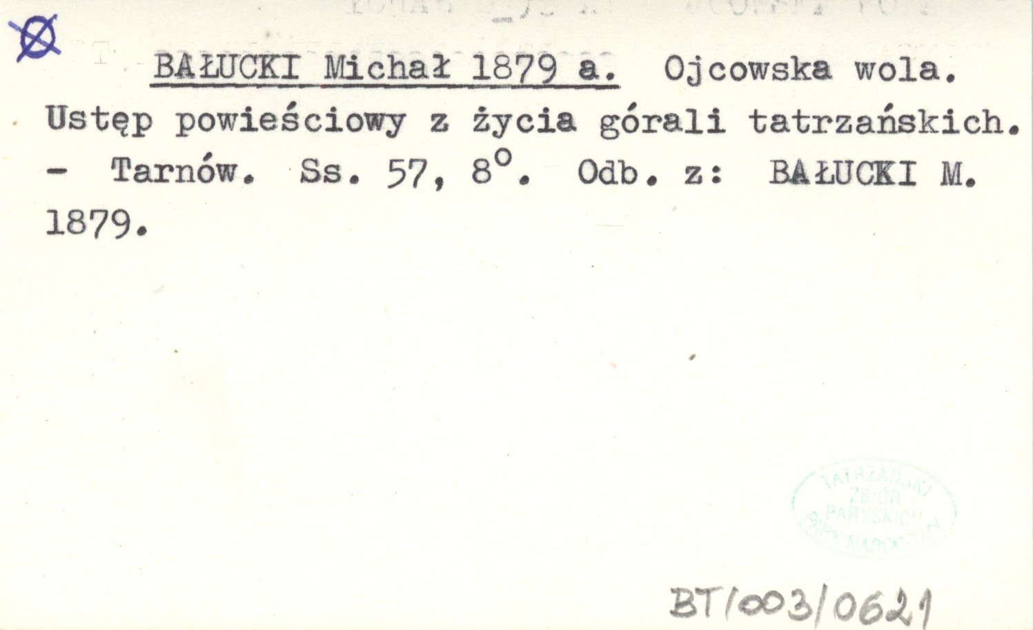 Tarnów , 57 s., 8°. Odb. z: BAŁUCKI M. 1879.