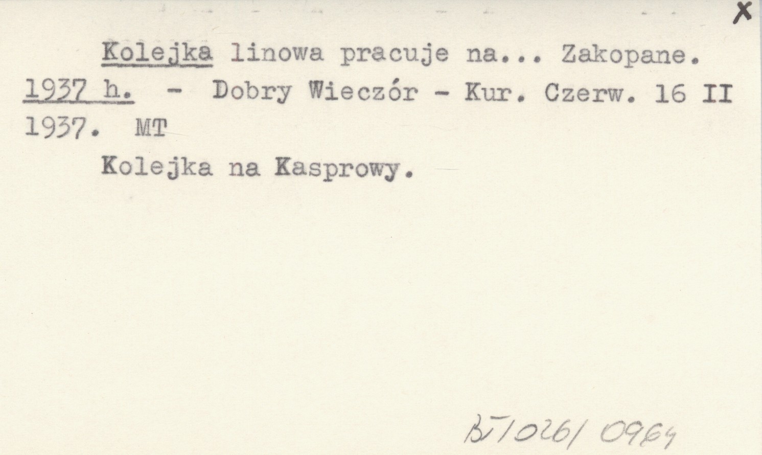 Dobry Wieczór, Kurjer Czerwony, 16 II 1937. Kolejka na Kasprowy.