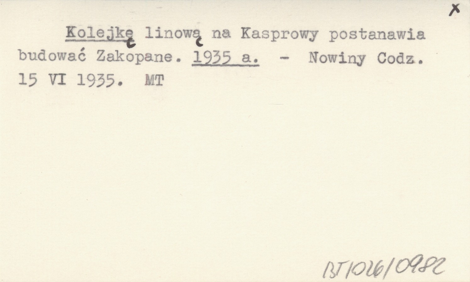 Kolejkę linową na Kasprowy postanawia budować Zakopane. 1935 a