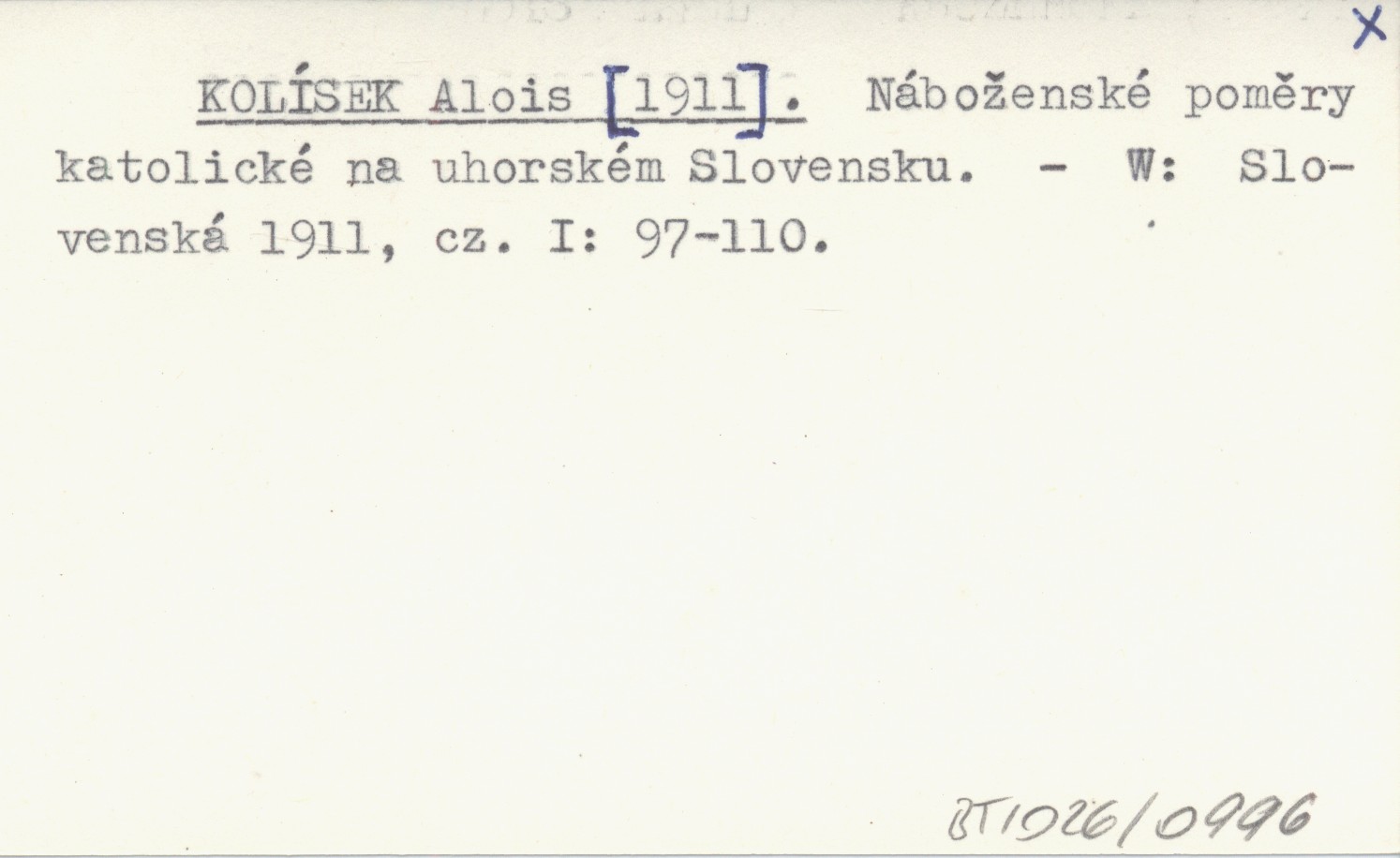 KOLÍSEK Alois [1911] Náboženské poměry katolické na uhorském Slovensku.