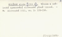 KOLÍSEK Alois [1911 a] Význam a umělecké zpracování slovenské písně lidové.