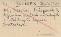 KOLÍSEK Alois 1929 Hej, Slováci. Príspevok k dejinám naąich národných a ątátnych hymien.
