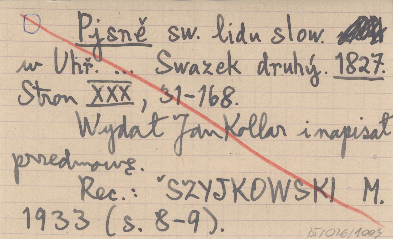 KOLLÁR Jan 1823 i 1827 Pjsně swětské lidu slowenského w Uhřjch. Sebrané a wydané od Pawla Jozefa Šaffařjka, Jana Blahoslawa [Benediktiho] a giných. Swazek prwnj.