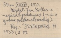 Pessti , 34 s., 150 s., 30 s., s. 31-168. Wydał Jan Kollar i napisał przedmowę (m.in. o gwarze polsko-słowackiej). REC: SZYJKOWSKI M. 1933 (s. 8-9)
