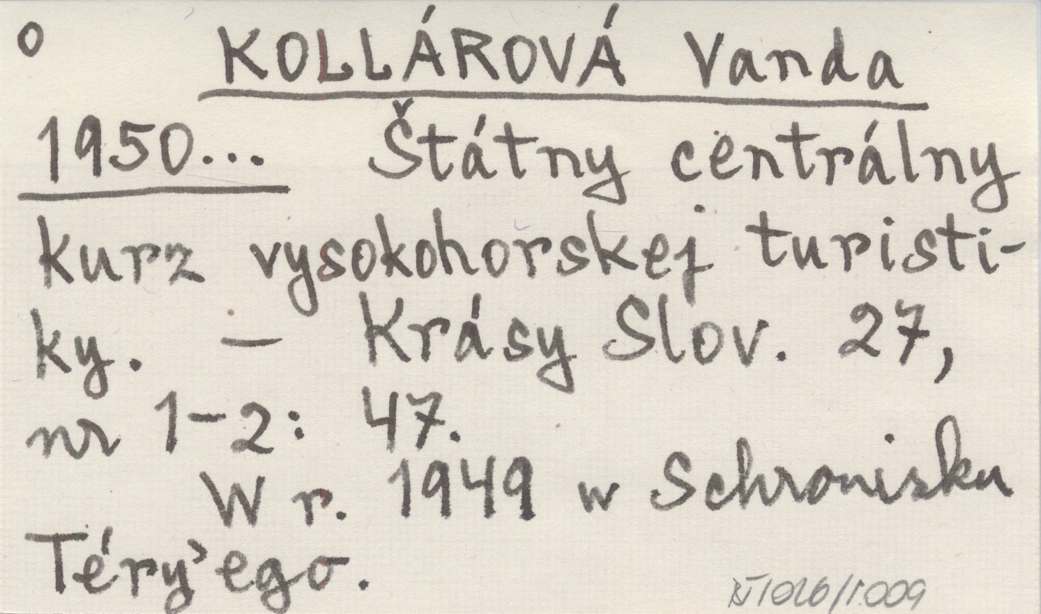 KOLLÁROVÁ Vanda 1950... Štátny centrálny kurz vysokohorskej turistiky.