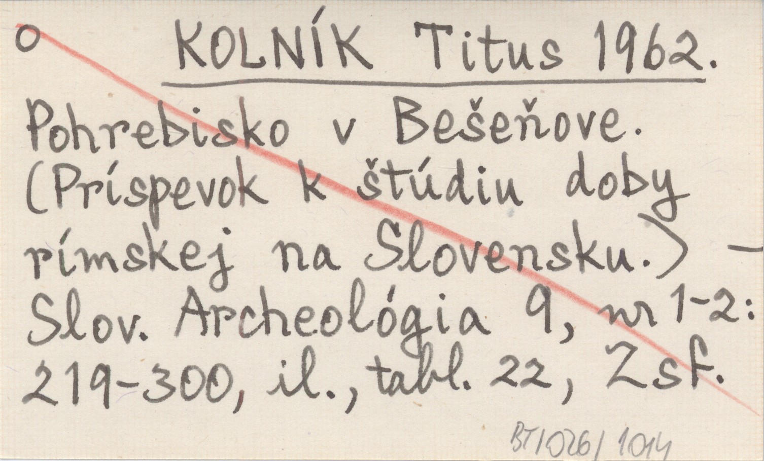 KOLNÍK Titus 1962 Pohrebisko v Bešeňove. (Príspevok k štúdiu doby rímskej na Slovensku.).