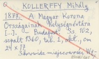 KOLLERFFY Mihály 1877 A Magyar Korona Országainak helységnévtára [...].