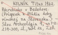 KOLNÍK Titus 1962 Pohrebisko v Beąeňove. (Príspevok k ątúdiu doby rímskej na Slovensku.).
