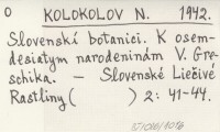 KOLOKOLOV N. 1942 Slovenskí botanici. K osemdesiatym narodeninám V. Greschika.