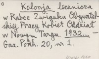 Kolonja lecznicza w Rabce Zwi±zku Obywatelskiej Pracy Kobiet Oddział w Nowym Targu. 1932...