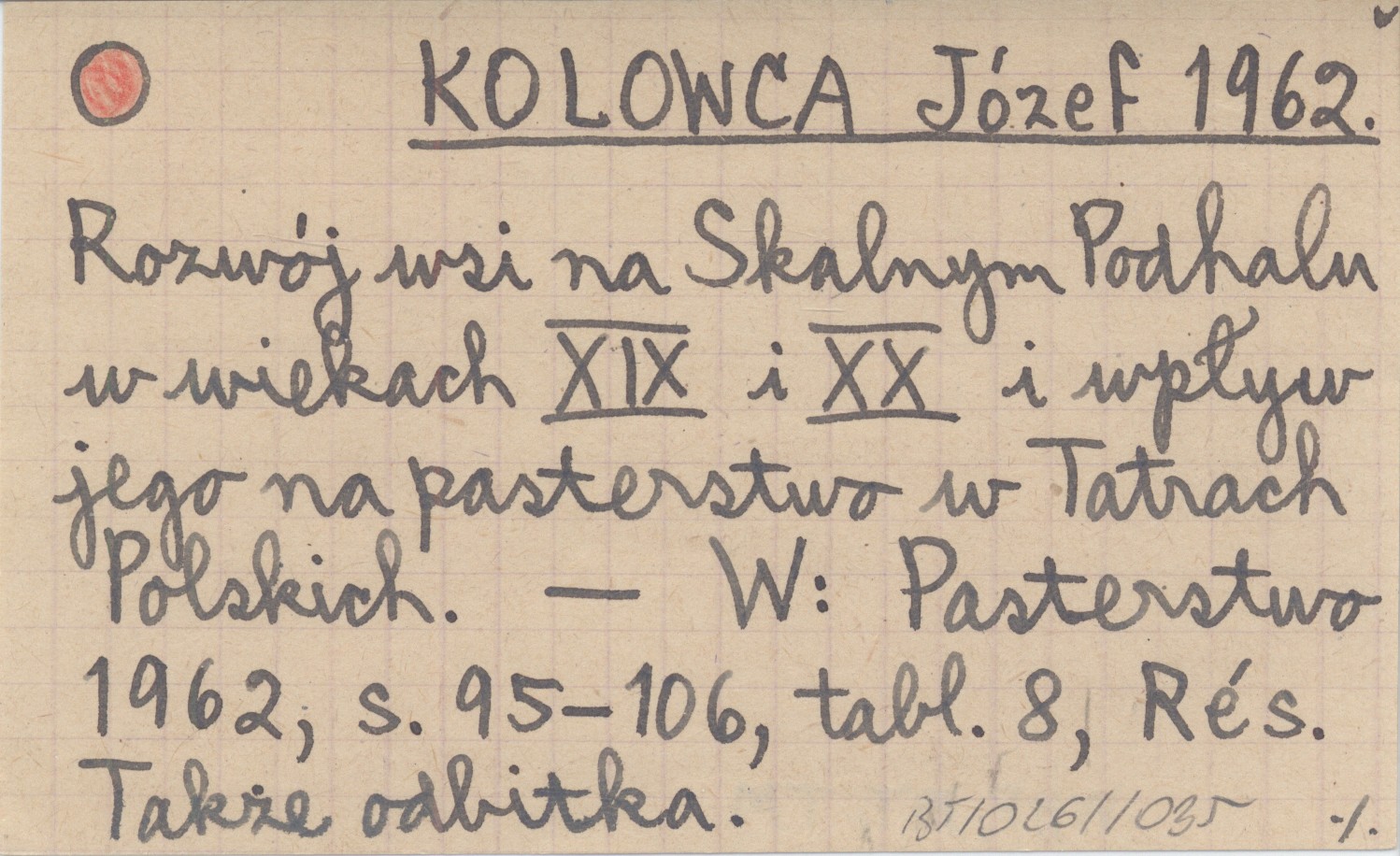 KOLOWCA Józef 1962 Rozwój wsi na Skalnym Podhalu w wiekach XIX i XX i wpływ jego na pasterstwo w Tatrach Polskich.