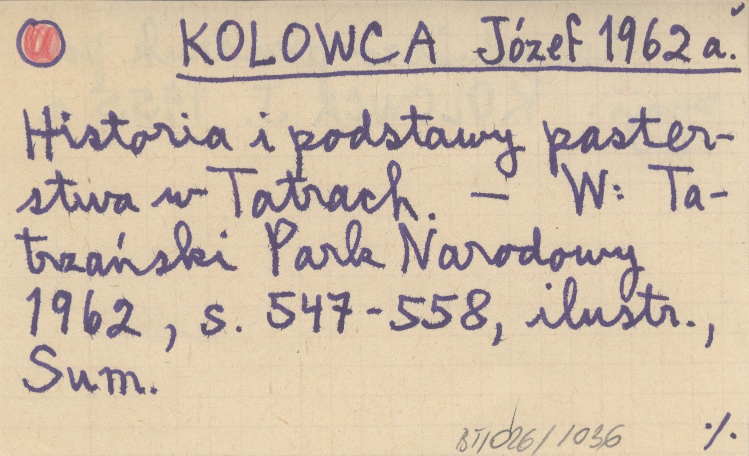 KOLOWCA Józef 1962 a Historia i podstawy pasterstwa w Tatrach.