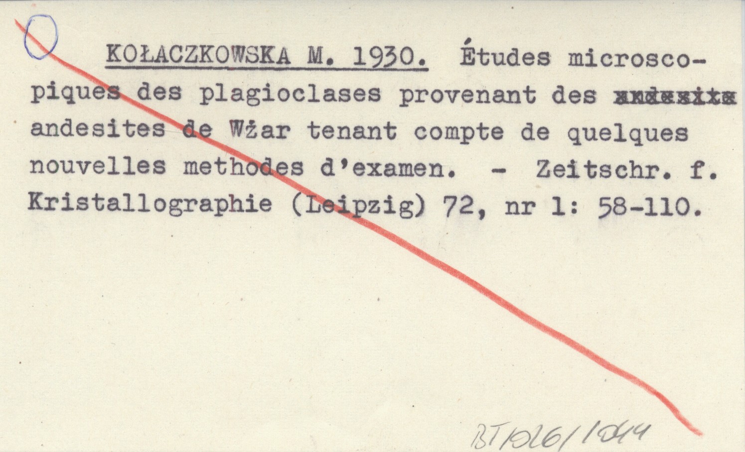 KOŁACZKOWSKA M. 1930 Études microscopiques des plagioclases provenant des andesites de Wżar tenant compte de quelques nouvelles methodes d'examen.
