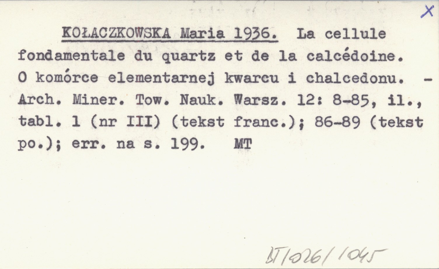 KOŁACZKOWSKA Maria 1936 La cellule fondamentale du quartz et de la calcédoine. O komórce elementarnej kwarcu i chalcedonu.