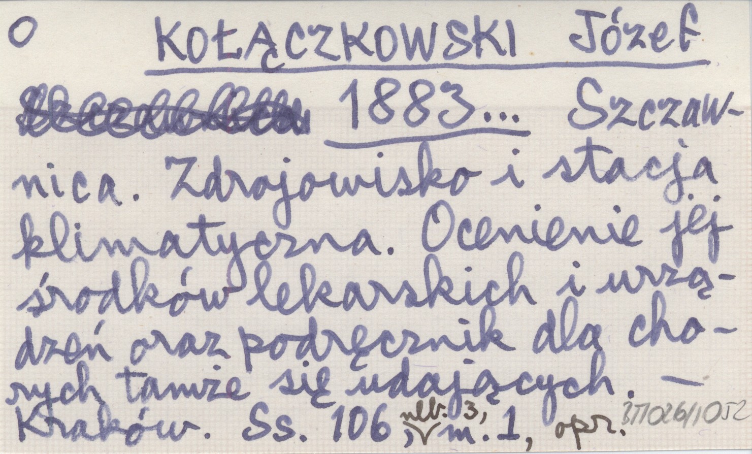 KOŁĄCZKOWSKI Józef 1883... Szczawnica. Zdrojowisko i stacja klimatyczna. Ocenienie jej środków lekarskich i urządzeń oraz podręcznik dla chorych tamże się udających.