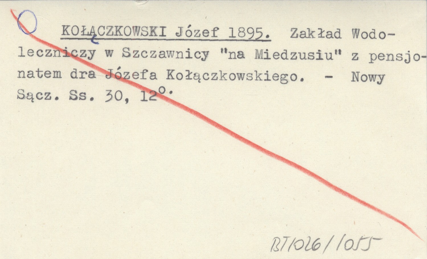 KOŁĄCZKOWSKI Józef 1895 Zakład Wodoleczniczy w Szczawnicy "na Miedzusiu" z pensjonatem dra Józefa Kołączkowskiego.