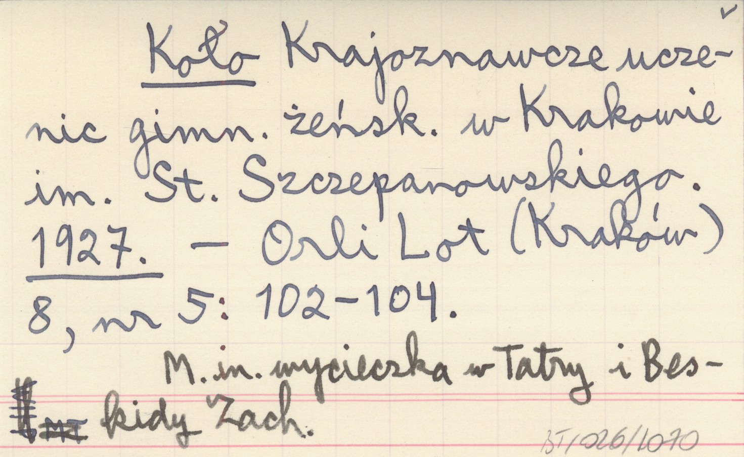 Orli Lot (Kraków) , 8, nr 5: 102-104. M.in. wycieczka w Tatry i Beskidy Zach.