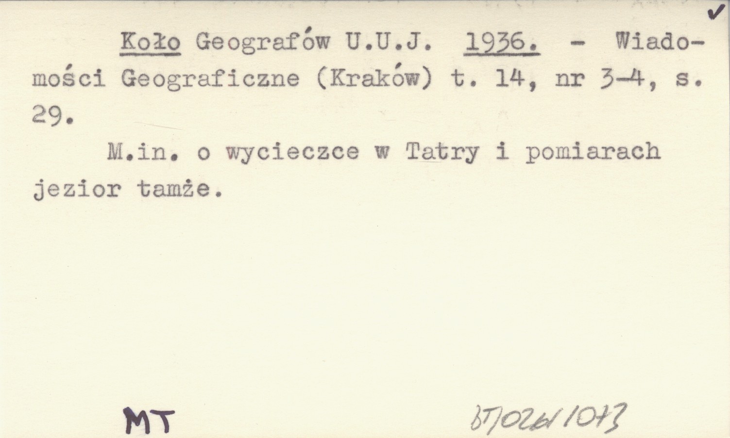 Wiadomości Geograficzne (Kraków) , T. 14, nr 3-4: 29. M.in. o wycieczce w Tatry i pomiarach jezior tamże.