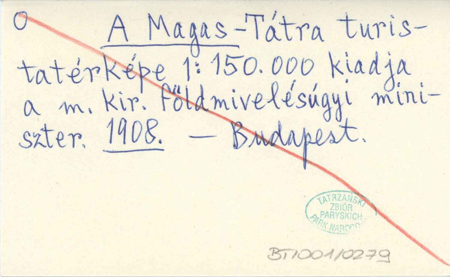 A Magas -Tátra turistatérképe 1:150 000 kiadja a m. kir. földmivelésúgyi miniszter. 1908