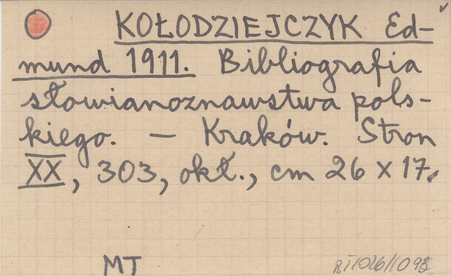 KOŁODZIEJCZYK Edmund 1911 Bibliografia słowianoznawstwa polskiego.
