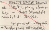 ek. [KO£ODZIEJCZYK Edmund] 1910 Przegl±d prasy s³owiañskiej. Z prasy s³owackiej.
