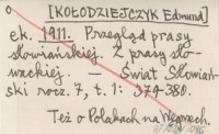 ek. [KO£ODZIEJCZYK Edmund] 1911 Przegl±d prasy s³owiañskiej. Z prasy s³owackiej.