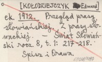 ek. [KO£ODZIEJCZYK Edmund] 1912 Przegl±d prasy s³owiañskiej. Z prasy s³owackiej.