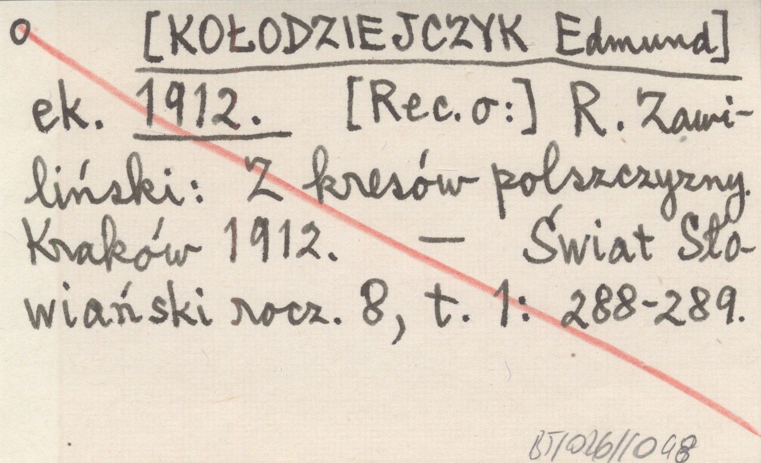 ek. [KOŁODZIEJCZYK Edmund] 1912 R. Zawiliński: Z kresów polszczyzny. Kraków 1912.