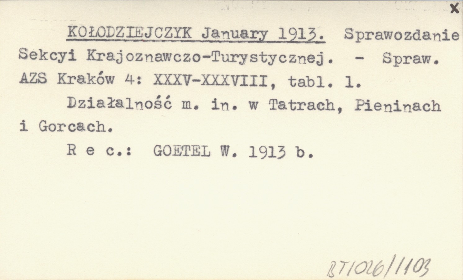 Spraw. AZS (Kraków) , 4: 35-38, 1 k. tabl. Działalność m.in. w Tatrach, Pieninach i Gorcach. REC: GOETEL W. 1913 b