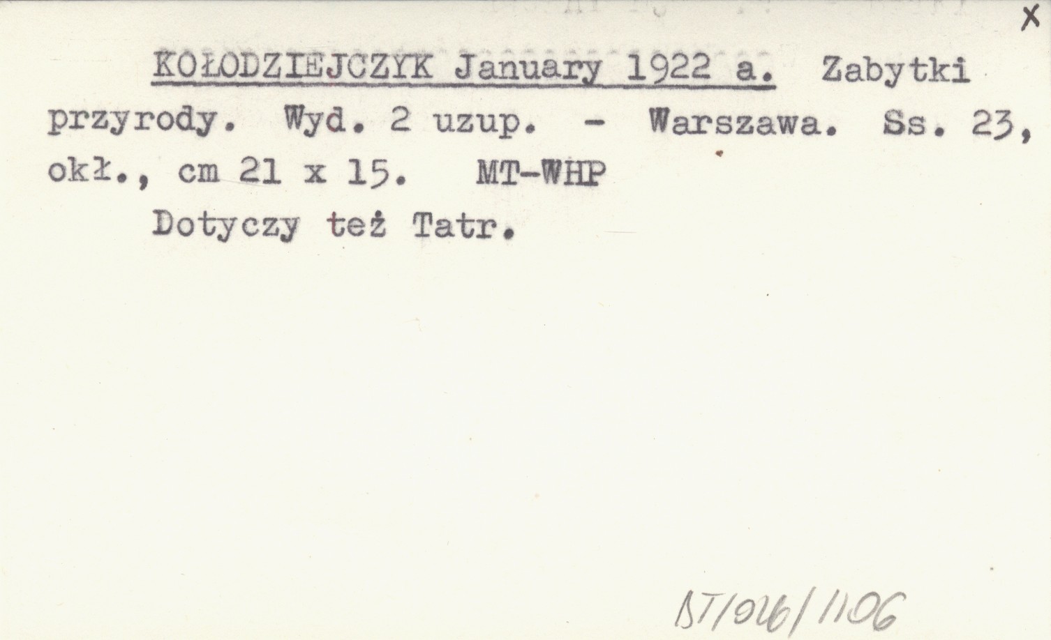 WYD: 2 (uzup.) Warszawa , 23 s., okł., 21x15 cm. Dotyczy też Tatr.