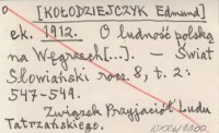 ek. [KOŁODZIEJCZYK Edmund] 1912 O ludność polską na Węgrzech [...].