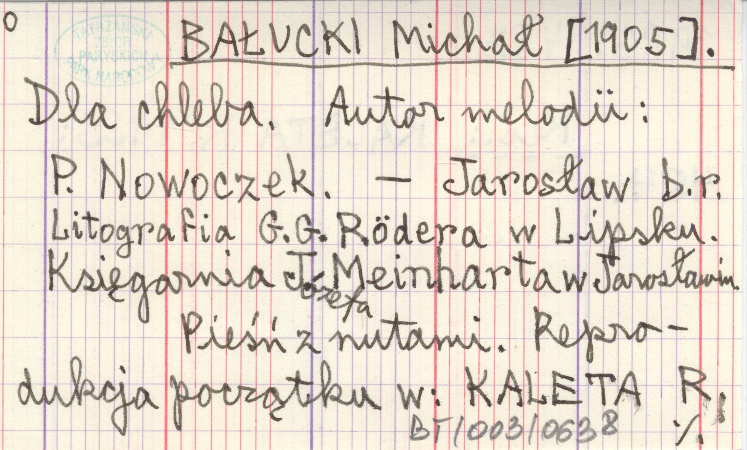 BAŁUCKI Michał [1905] Dla chleba. Autor melodii: P. Nowoczek.
