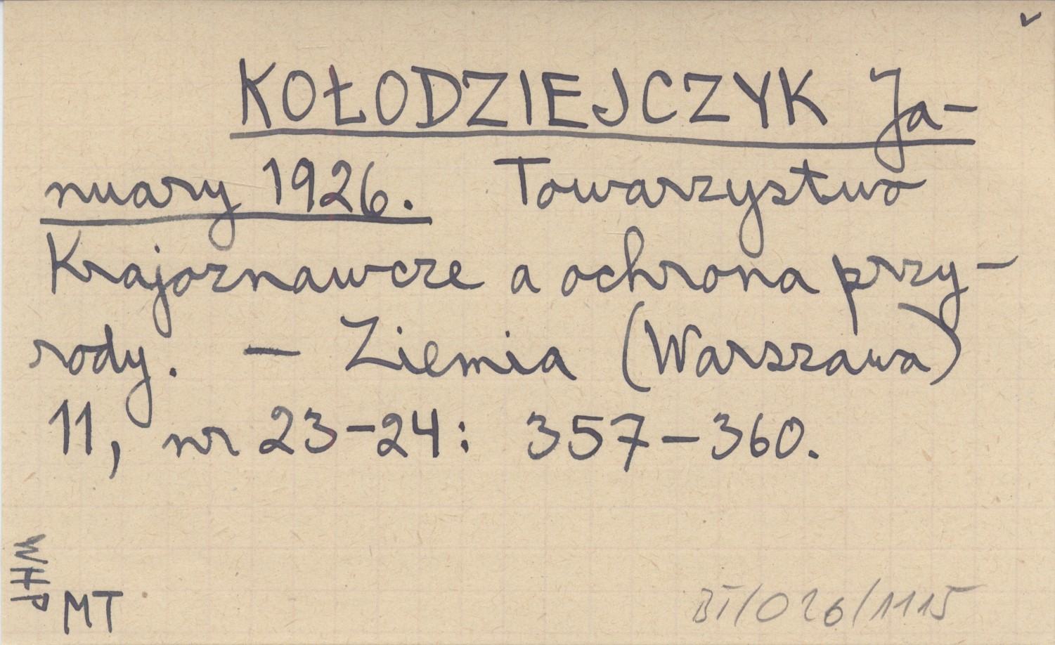 KOŁODZIEJCZYK January 1926 Towarzystwo Krajoznawcze a ochrona przyrody.