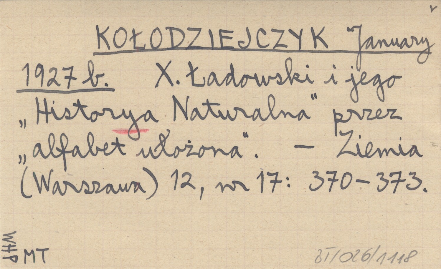 KOŁODZIEJCZYK January 1927 b X. Ładowski i jego "Historya Naturalna" przez "alfabet ułożona".