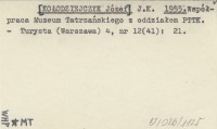 J.K. [KOŁODZIEJCZYK Józef] 1955 Współpraca Muzeum Tatrzańskiego z oddziałem PTTK.
