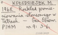 KOŁODZIEJEK M. 1968 Rozkład promieniowania słonecznego w Tatrach.