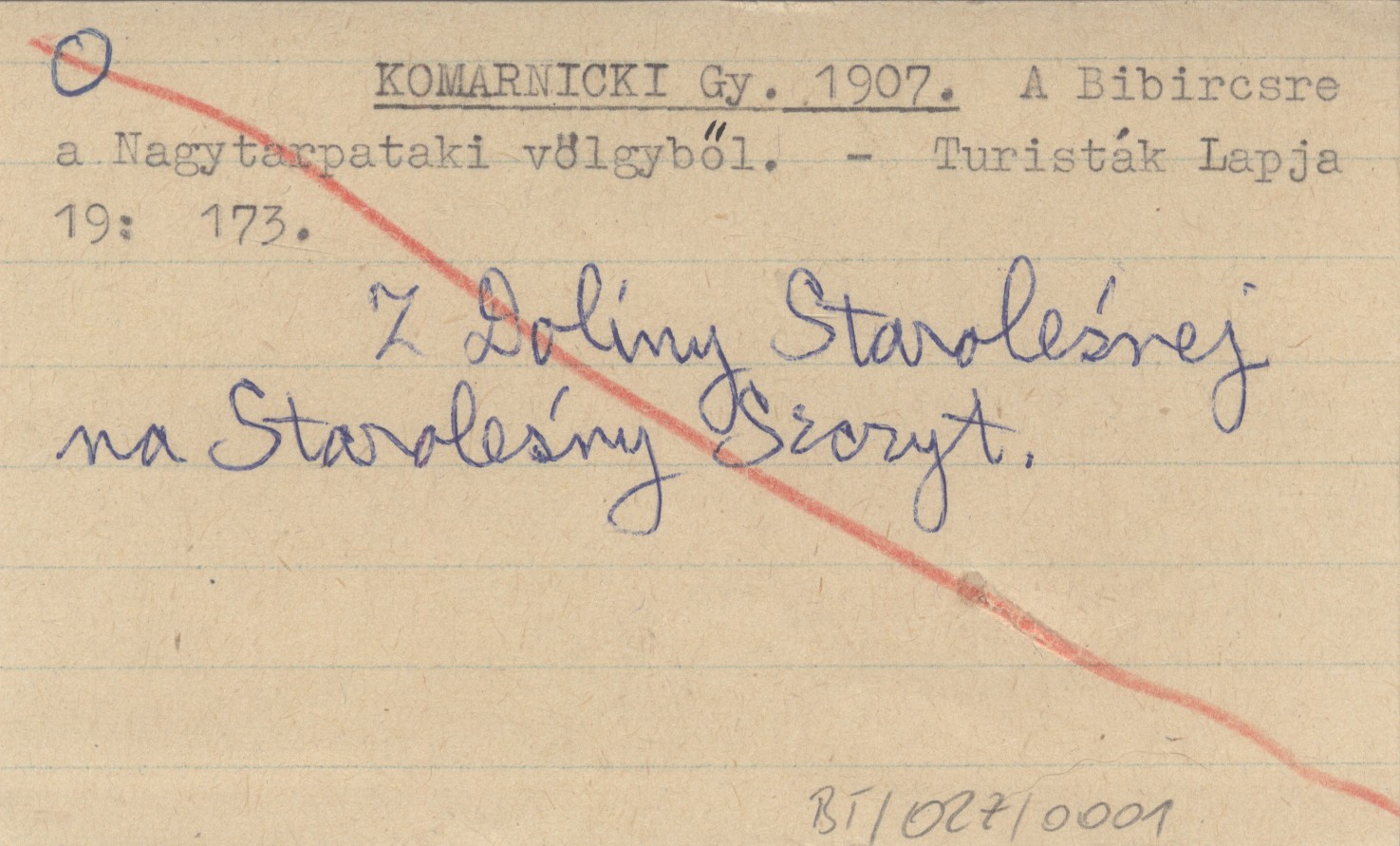 KOMARNICKI Gy. 1907 A Bibircsre a Nagytarpataki völgyből.