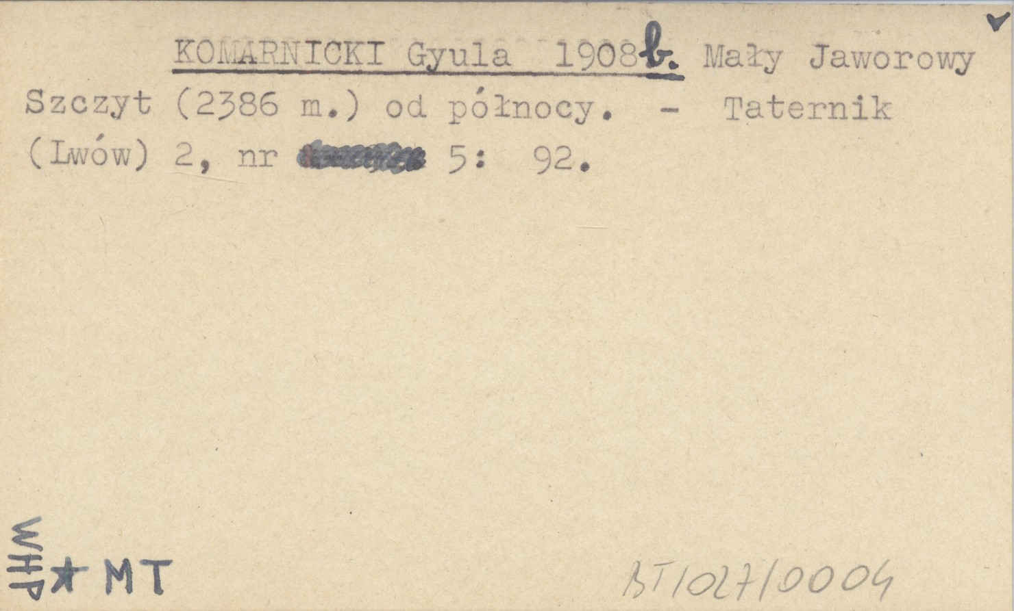 KOMARNICKI Gyula 1908 b Mały Jaworowy Szczyt (2386 m.) od północy.